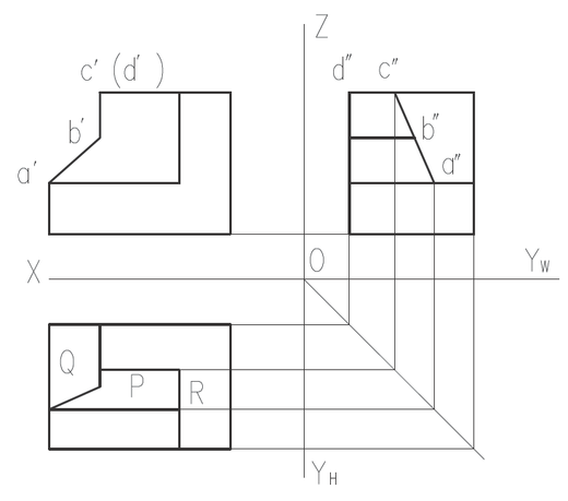 Q面是正垂面,R面是水平面】