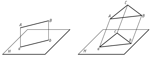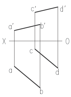 两条互相平行的直线,它们所确定的平面一定平行于投影面。