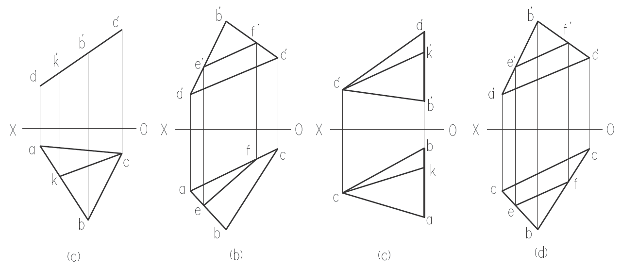 直线属于平面ABC,且平行于H面的情况有: