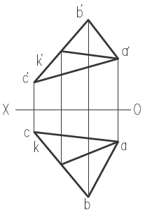 在一般位置平面上确定点,做辅助线的方法只有一种:过平面上的两个已知点做线,并使该点属于该线。