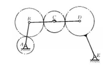 图示机构为一齿轮-连杆组合机构(图中各圆均表示齿轮),计算其机构的自由度,若机构AB杆为原动件时,问该机构是否运动确定?机构中若有复合铰链、局部自由度和虚约束,应明确指出。