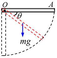 均匀细棒OA可绕通过其一端O而与棒垂直的水平固定光滑轴转动,如图所示。今使棒从水平位置由静止开始自由下落,在棒摆动到竖直位置的过程中,下述说法哪一种是正确的?