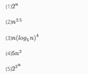 Write the following time complexity in descending sequence:Write down the answer labels such as (1)(2)(3)(4)(5). (Hint:This problem is judged by string matching, Please make sure your answer don’t contain any blanks. )