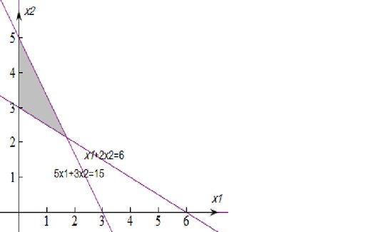 线性规划max z = 2×1 + 3×2s.t. x1 + 2×2 ≤ 65×1 + 3×2 ≤ 15x1 , x2 ≥ 0 的可行域是():