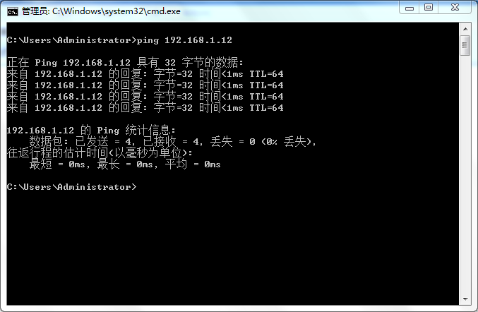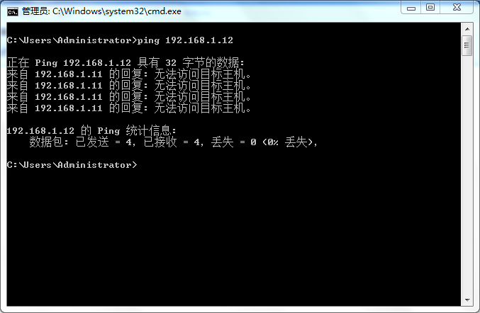 测试台式计算机测试(192.168.1.11)是否联通笔记本电脑(192.168.1.12),表示联通了的截图是 。