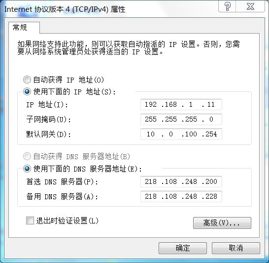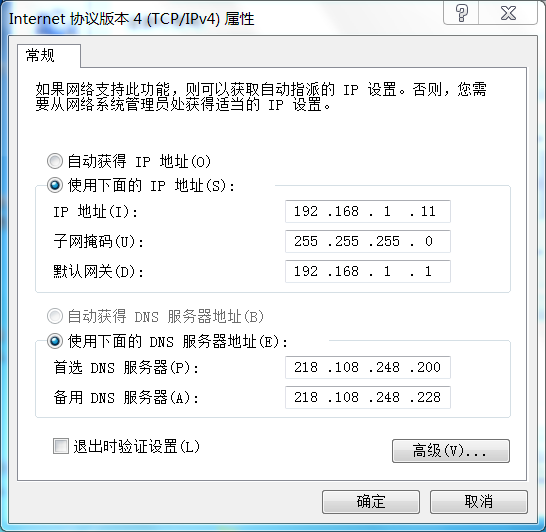 将计算机的IP地址设置成192.168.1.11的过程中,正确的截图是 。