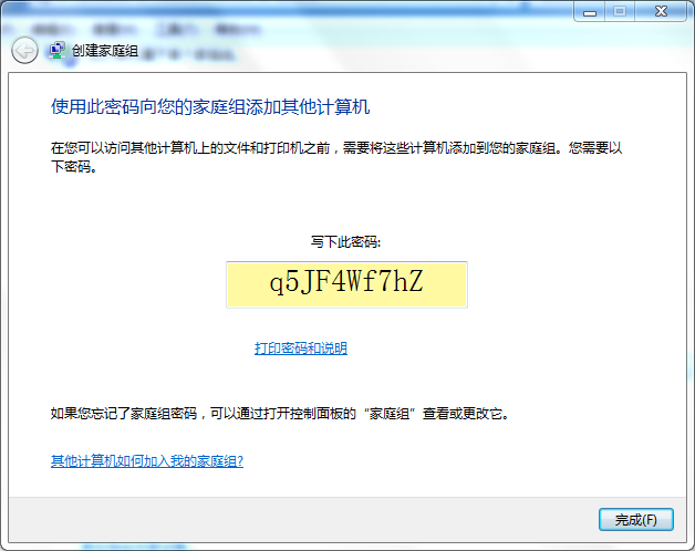 一台计算机要加入已建成的“家庭组”中,主要的通行证是 。
