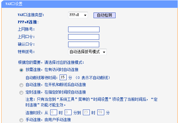 实现路由器接入因特网,需要对WAN口进行设置,以下截图中,出现可能性不大的是 。