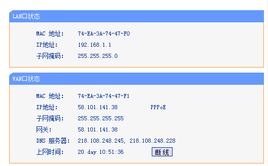 答案: 【 WAN口的IP地址58.101.141.38是由运行商提供,并保持不变】