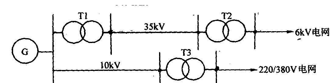 试确定图所示供电系统中变压器T1、T3一次侧的额定电压为__________。